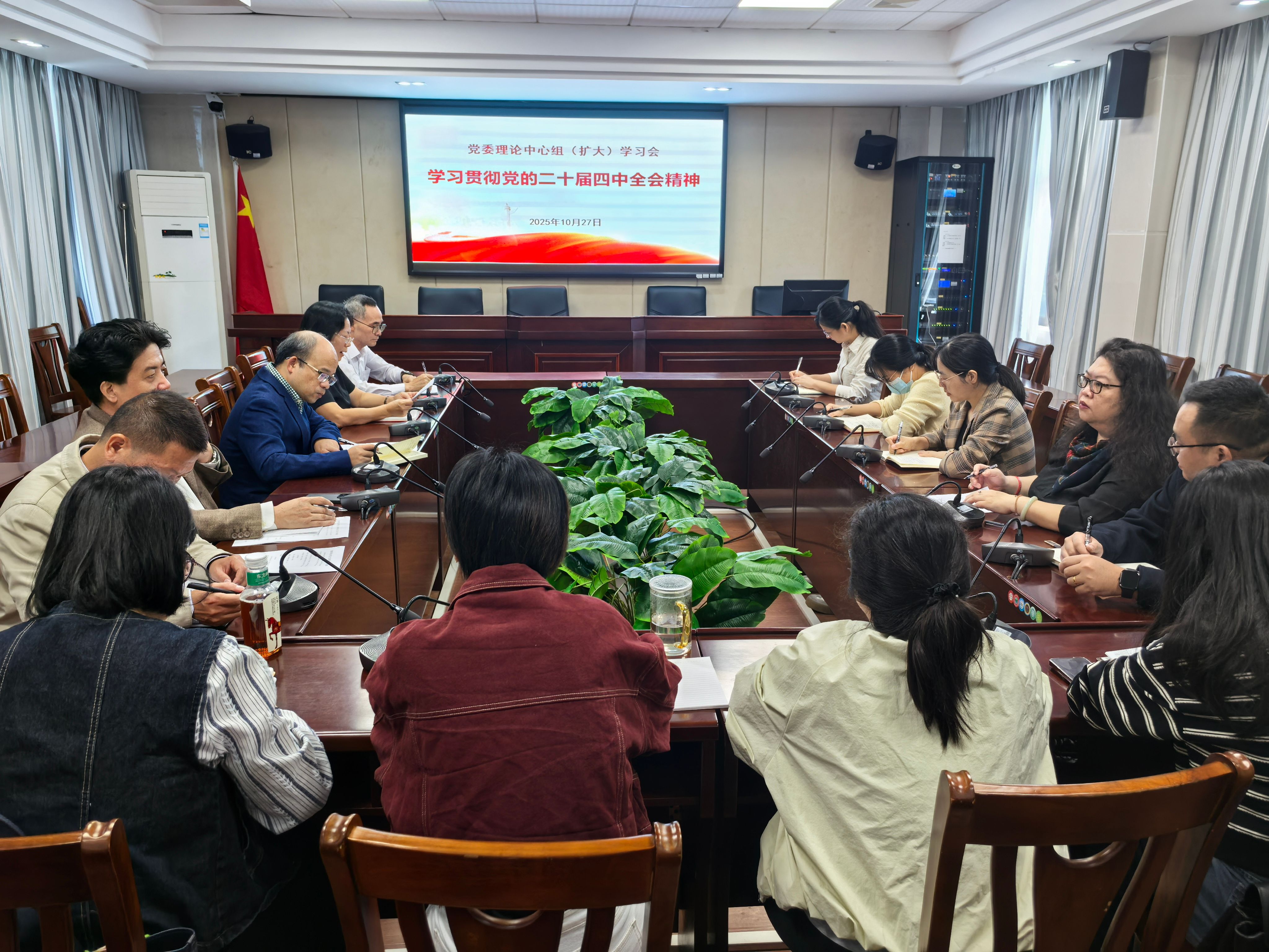 10月27日,旅游学院召开党委理论学习中心组(扩大)会议,专题学习贯彻党的二十届四中全会精神。党委书记杨雪梅主持,李朝军院长、郑安徽副书记、廖继武副院长、王灿副院长,党支部书记以及系部主任参加。