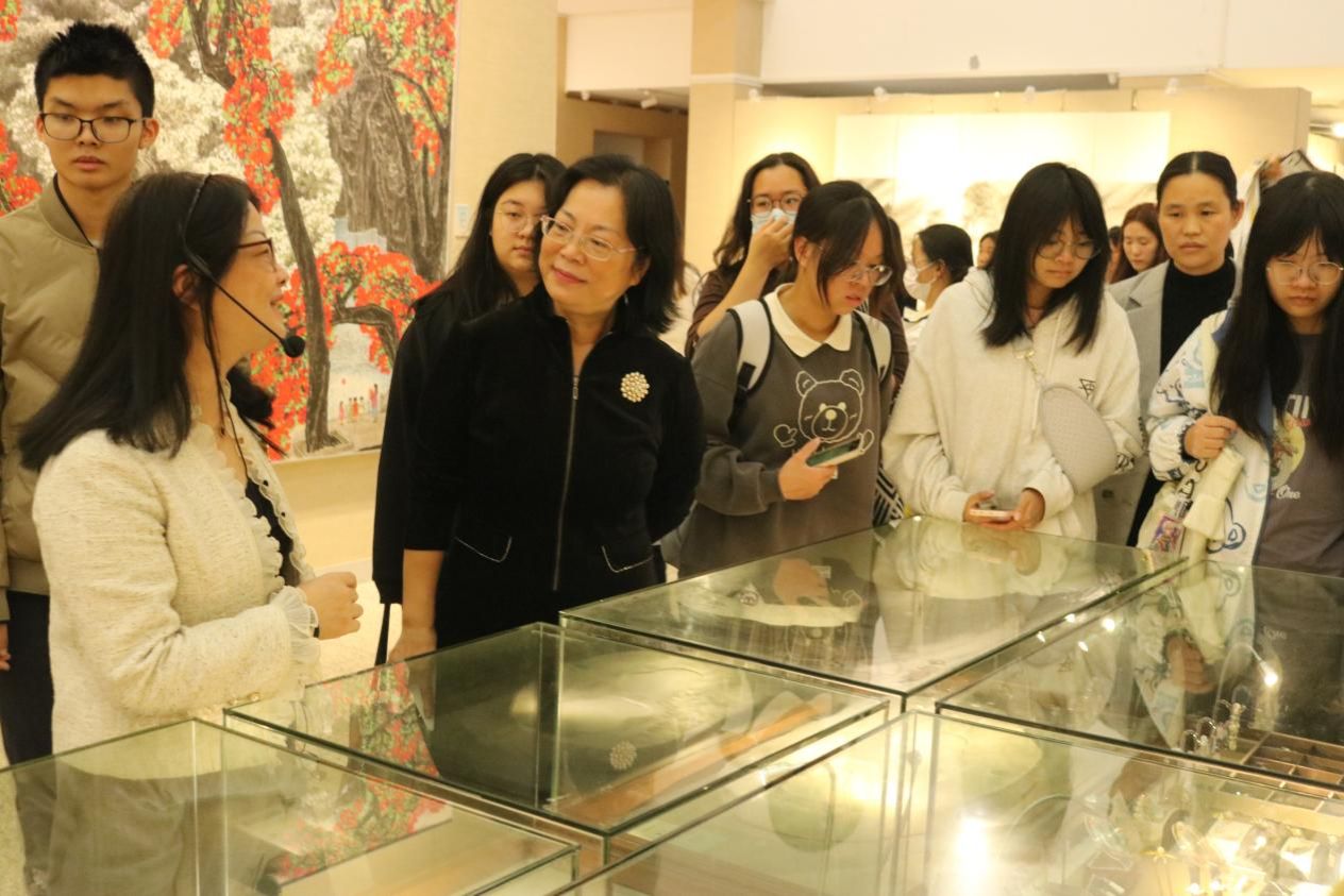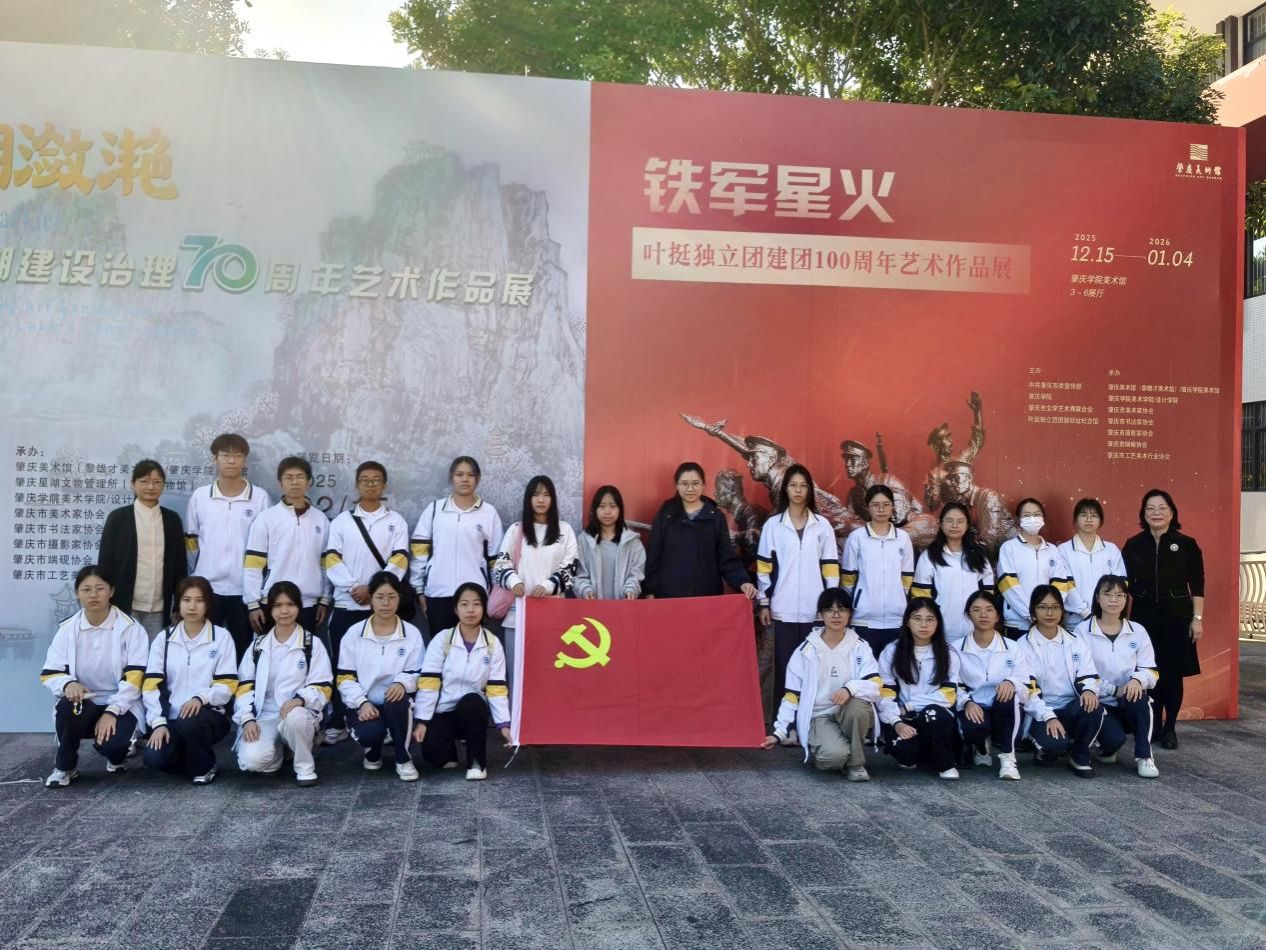 为深化党建与专业特色融合,推动红色教育与生态文明教育走深走实,12月17日,旅游与历史文化学院和美术学院、设计学院联合举办“七十载星湖蝶变 一百年铁军魂燃”学生党支部主题党日活动,组织两院的学生党员、发展对象和入党积极分子代表到肇庆美术馆参观“星湖潋滟——肇庆星湖建设治理70周年艺术作品展”与“铁军星火——叶挺独立团建团100周年艺术作品展”,以艺术为媒感悟初心使命,以实践为基凝聚奋进力量。肇庆美术馆副馆长刘晓慧亲自担任讲解员,美术学院、设计学院党委书记陈明华、副书记胥家桢、旅游与历史文化学院党委书记杨雪梅以及两院教师党员代表也参加了本次活动。