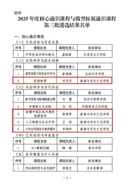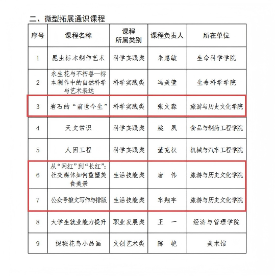 此次多门课程成功入选,是旅游学院高度重视通识教育建设、持续深化课程改革创新的重要成果,更是全体授课教师深耕教学、潜心钻研的心血结晶。未来,我院将以此次课程认定为契机,进一步加强通识课程体系建设,不断打磨课程质量、创新教学模式,充分发挥核心课程的示范引领作用,为提升人才培养质量、推动学院教育教学事业高质量发展注入新动能!