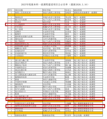 近日,2025年度校级一流本科课程拟立项名单公示结束,全校总计立项40项,我院课程建设成果丰硕,4门课程成功获批立项,实现学院一流课程建设的新突破!