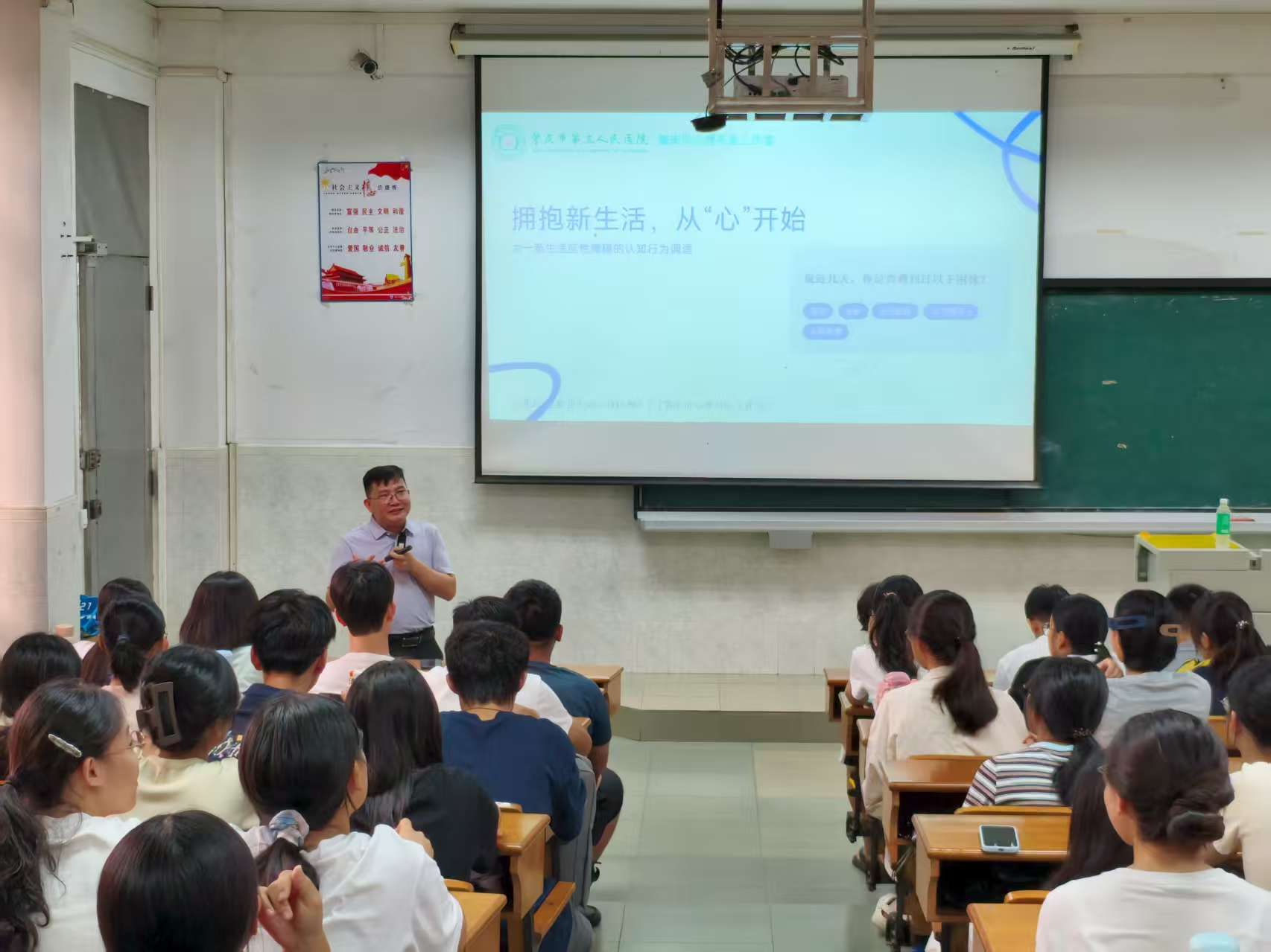 为帮助2025级新生快速适应大学生活,缓解入学适应期的心理压力,引导新生树立积极健康的心理观念,近日,我院邀请到第三人民医院心理科梁其生主任为新生召开以“拥抱新生活,从‘心’开始”为主题的心理健康教育讲座。本次讲座学院党委书记杨雪梅和全体2025级新生参加,25级辅导员慕容诗韵主持。